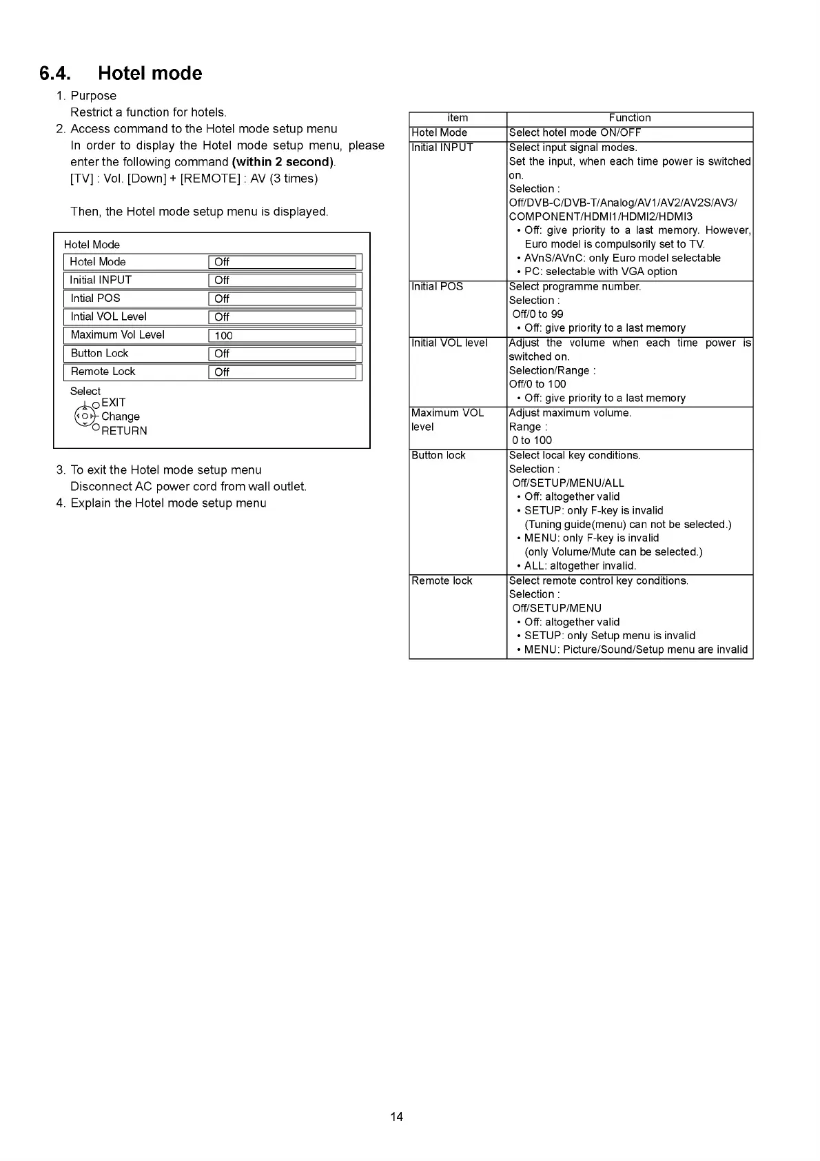[TV] : Vol. [Down] + [REMOTE] : AV (3 times)