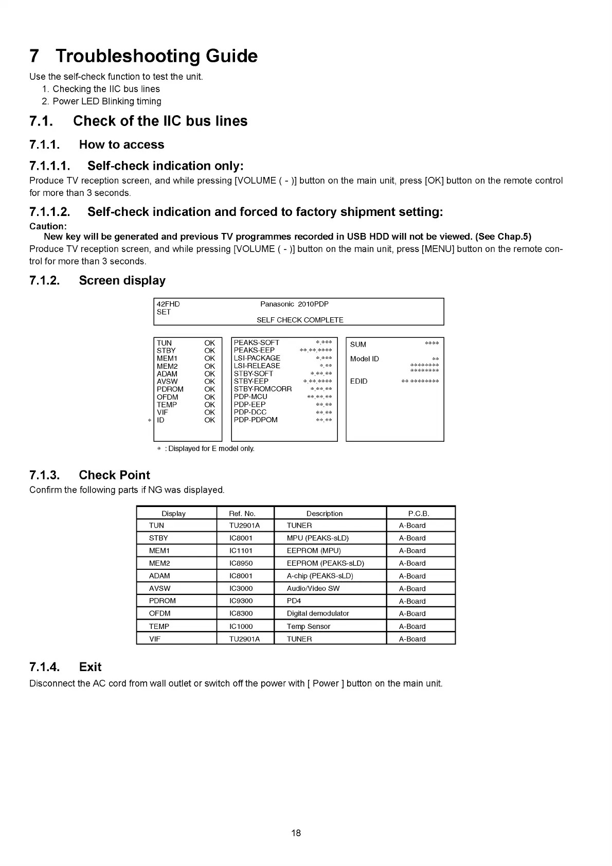 7.1.1.2. Self-check indication and forced to factory shipment setting: