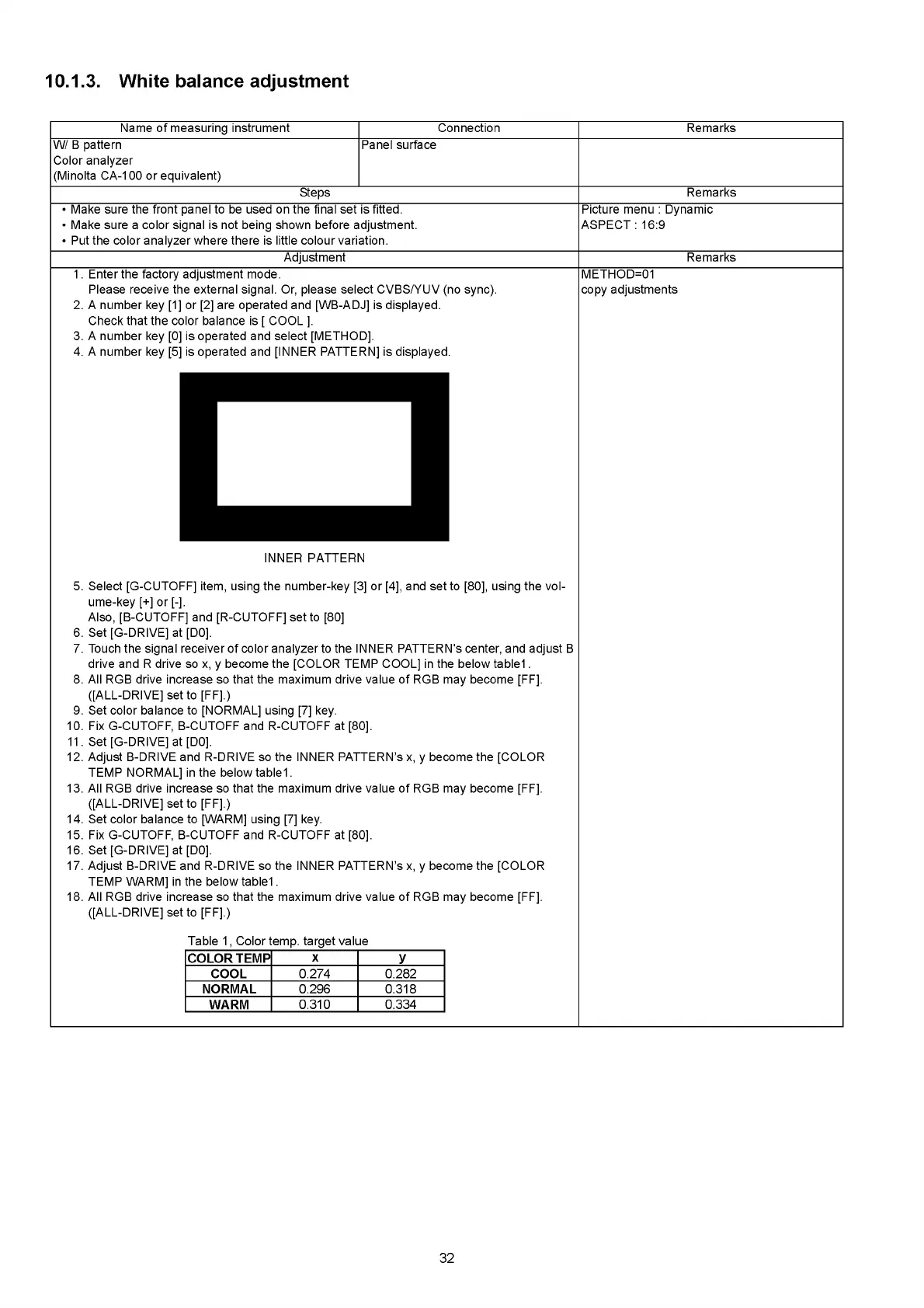 drive and R drive so x, y become the [COLOR TEMP COOL] in the below table1.