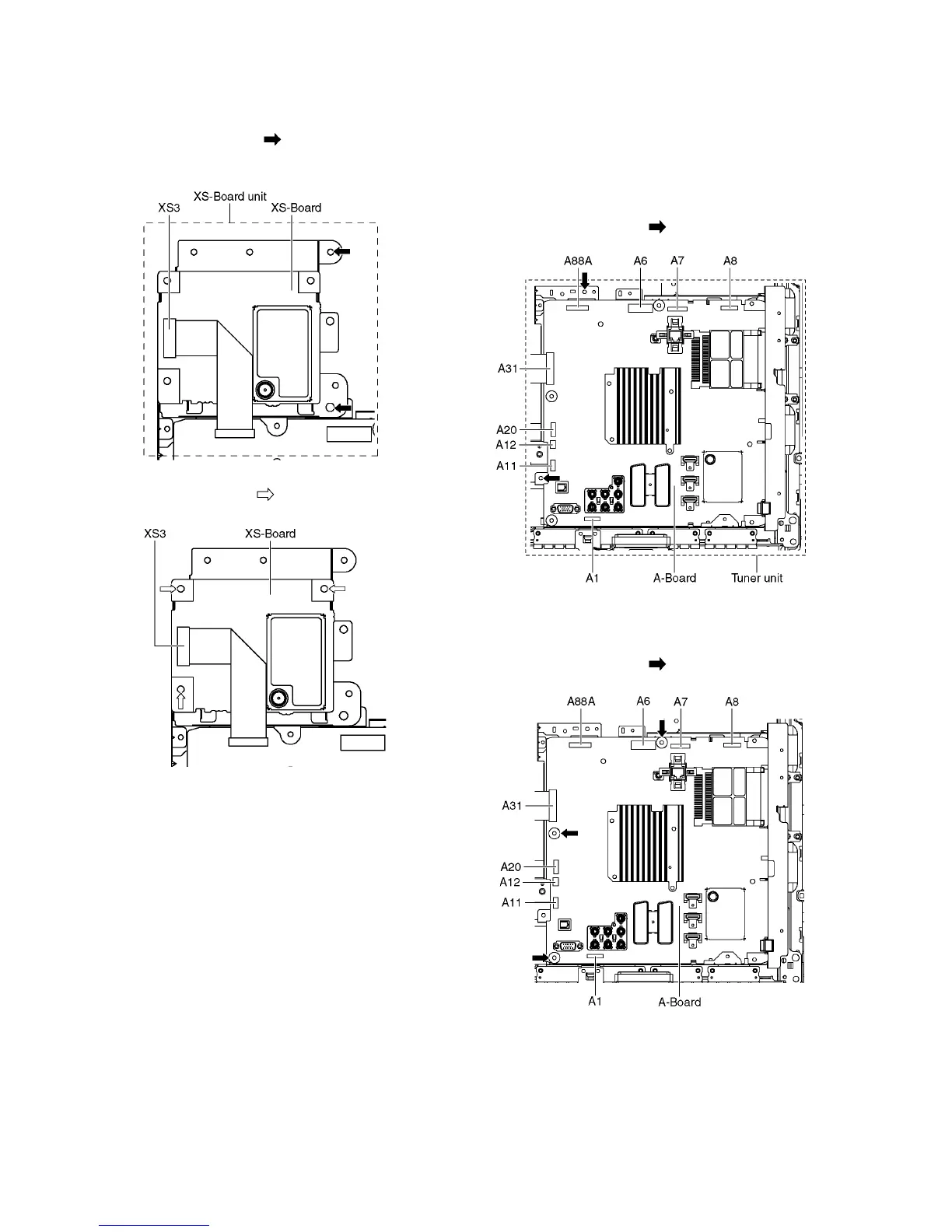 4. Remove the screws (×3 ) and remove the XS-Board.