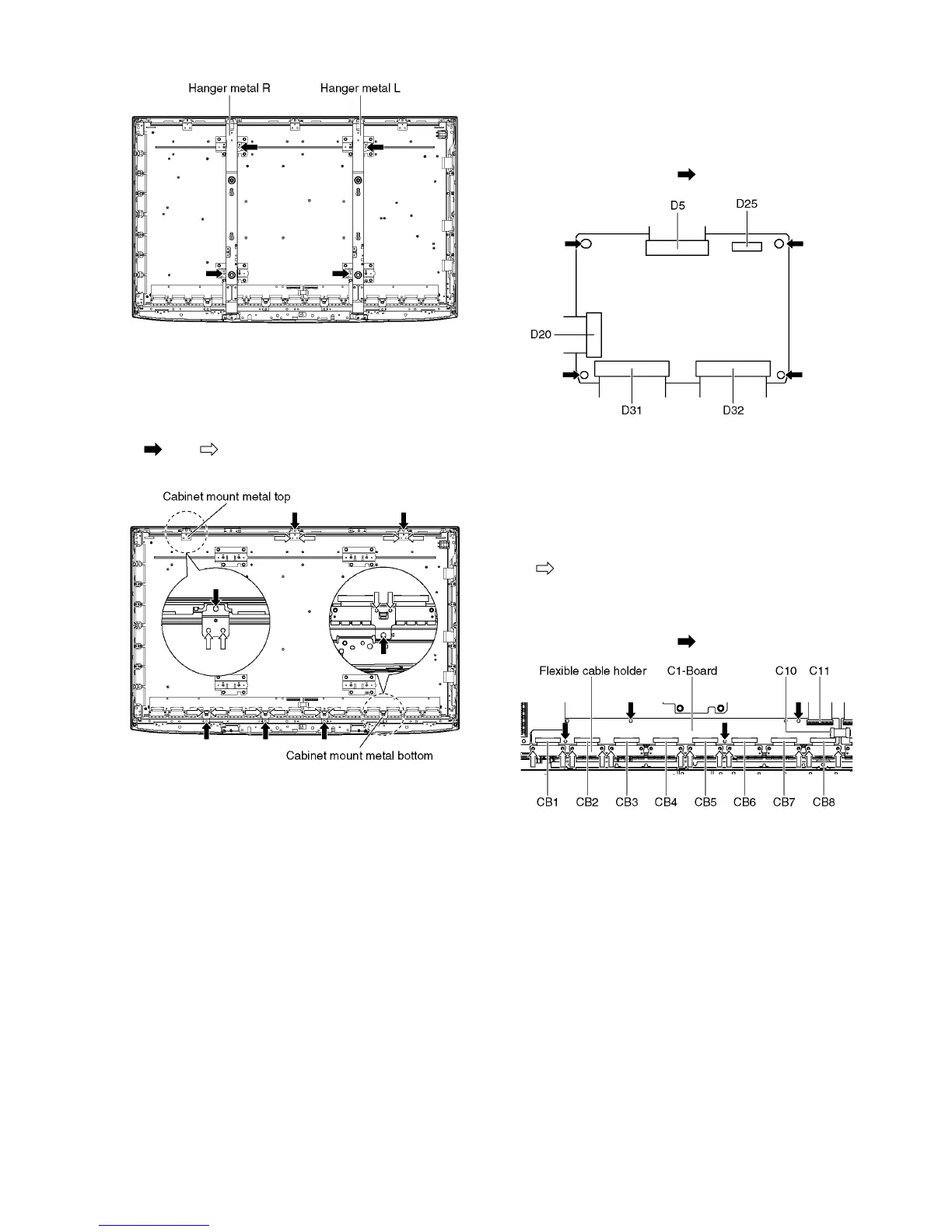 4. Disconnect the flexible cables (CB1, CB2, CB3, CB4,