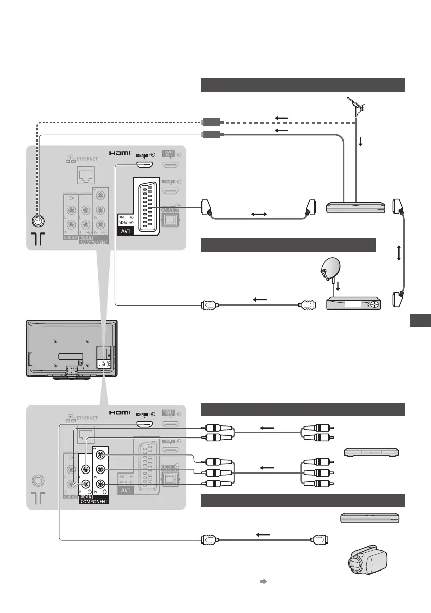 T hese diagrams show our recommendations for connection of your TV to various pieces of equipment.