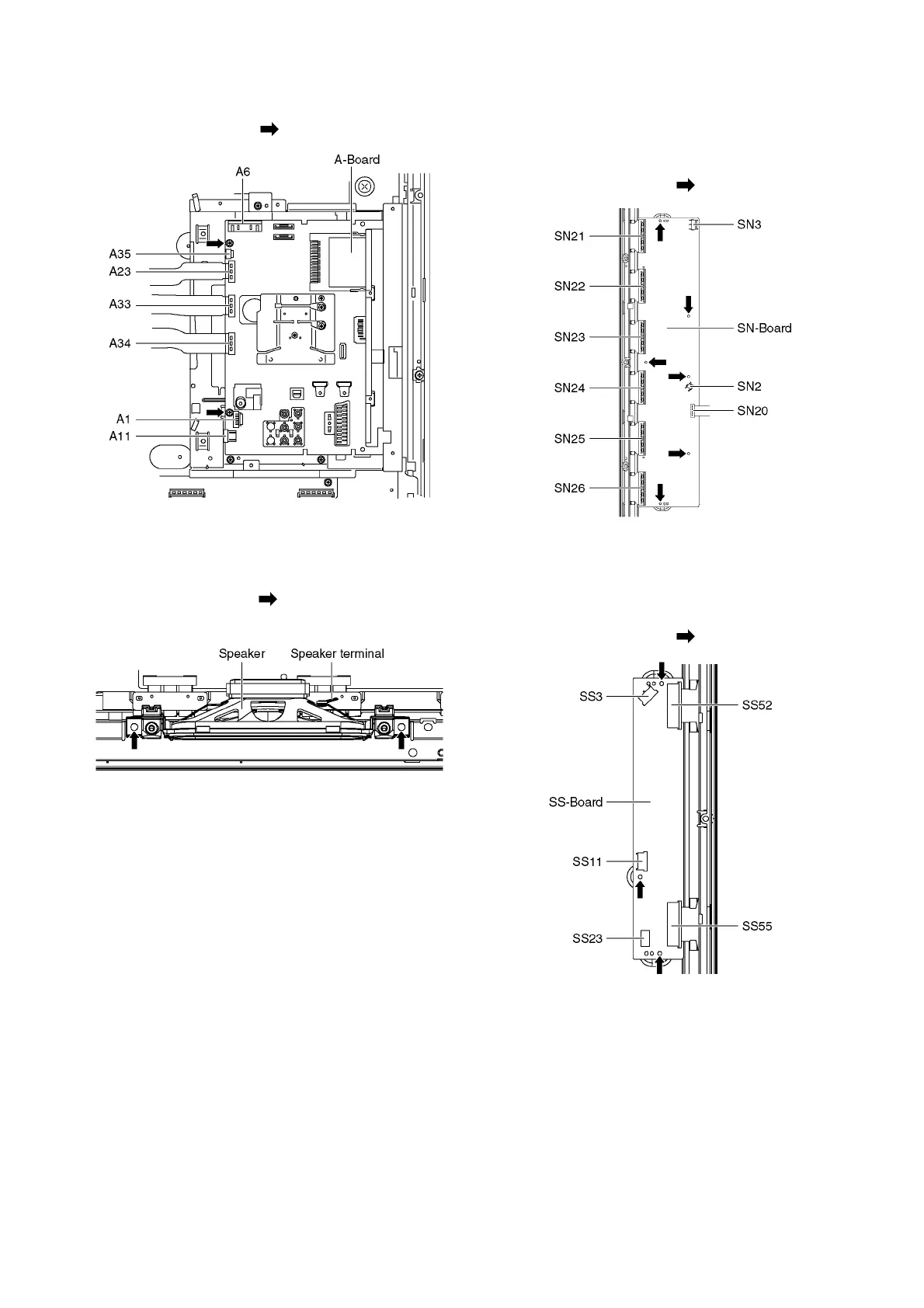 3. Disconnect the flexible cables (SS23, SS52 and SS55).