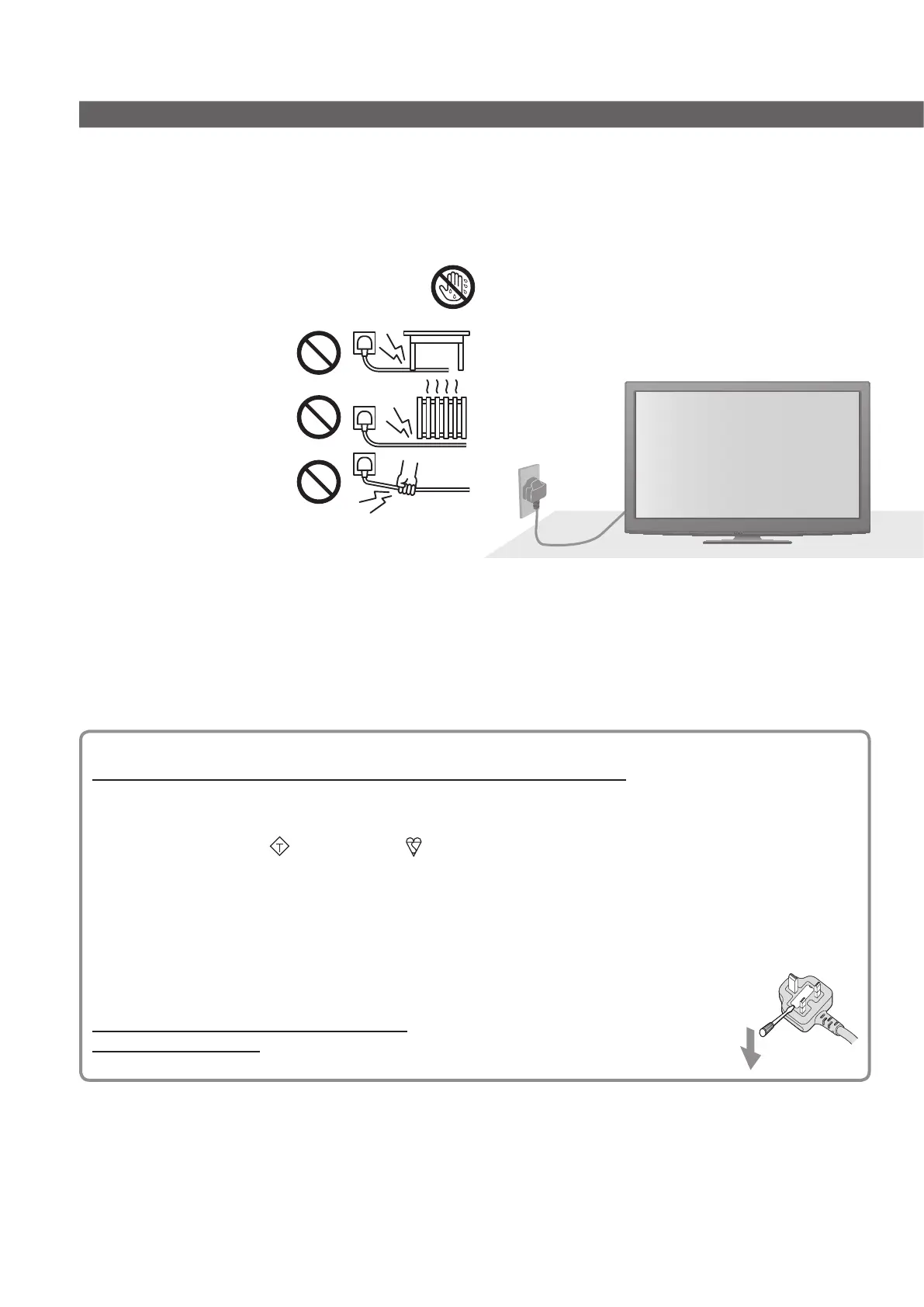 Ensure the TV does not crush the mains lead.•