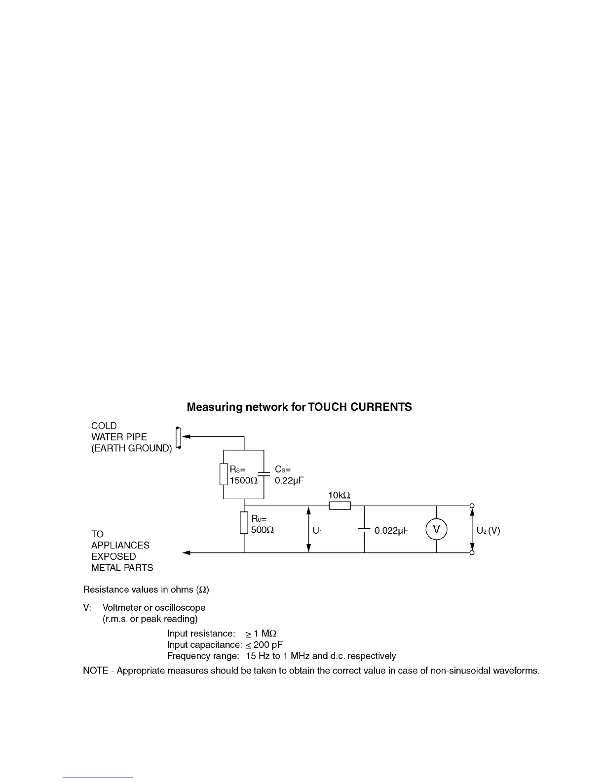 3. Use Leakage Current Tester (Simpson 228 or equivalent) to measure the potential across the measuring network.