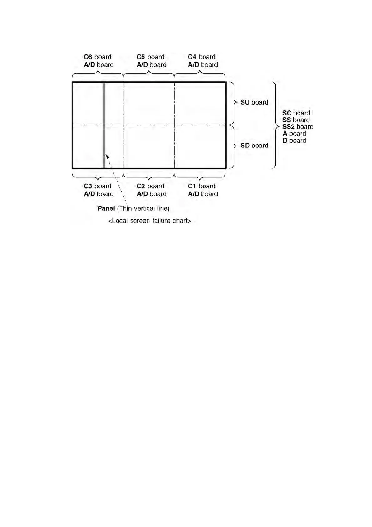 Plasma display may have local area failure on the screen. Fig-1 is the possible defect P.C.B. for each local area.