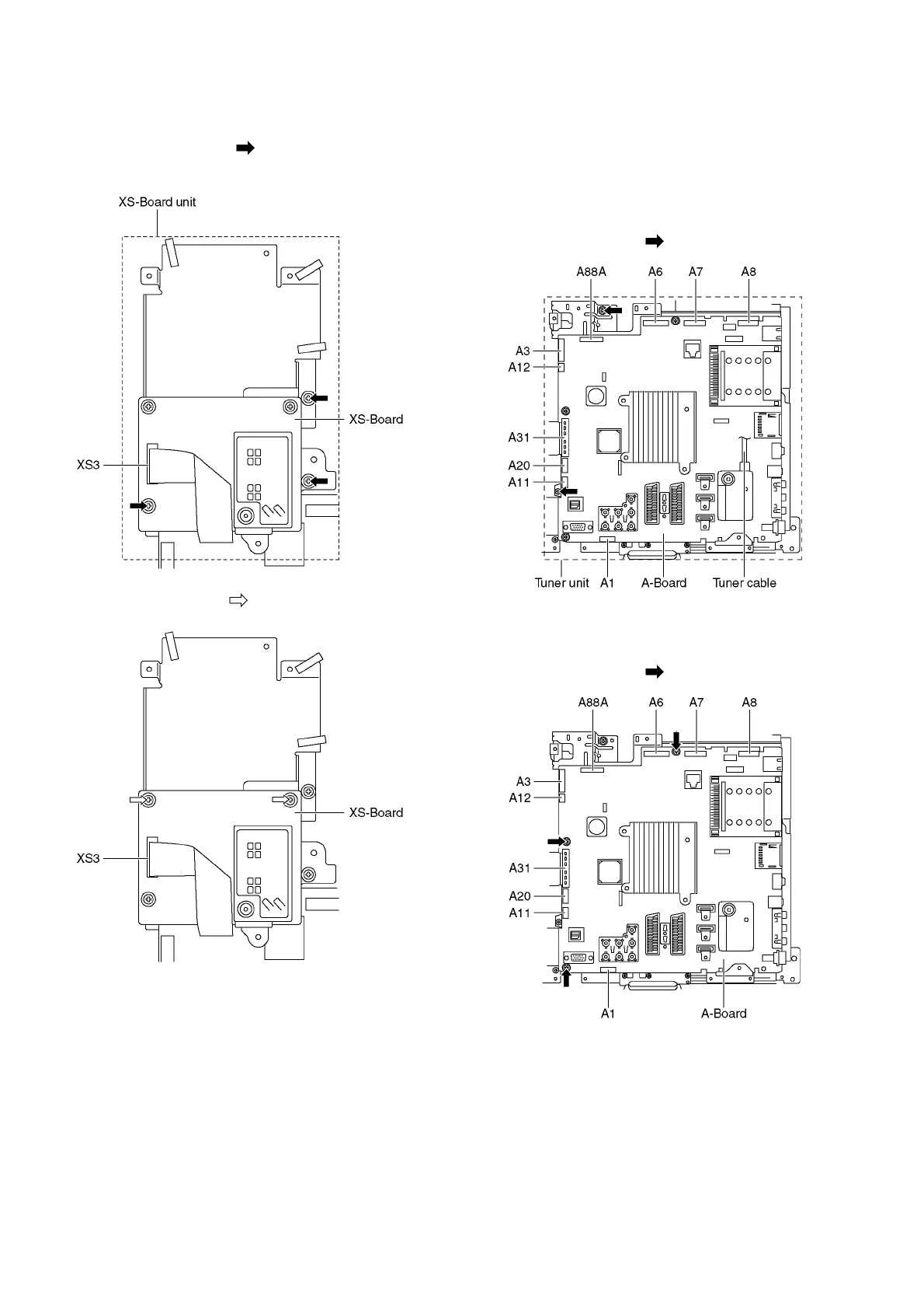 4. Remove the screws (×3 ) and remove the XS-Board.