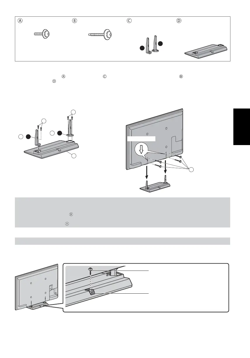 Sørg for at afmontere soklen på følgende måde, når du anvender vægophænget eller pakker fjernsynet ned.