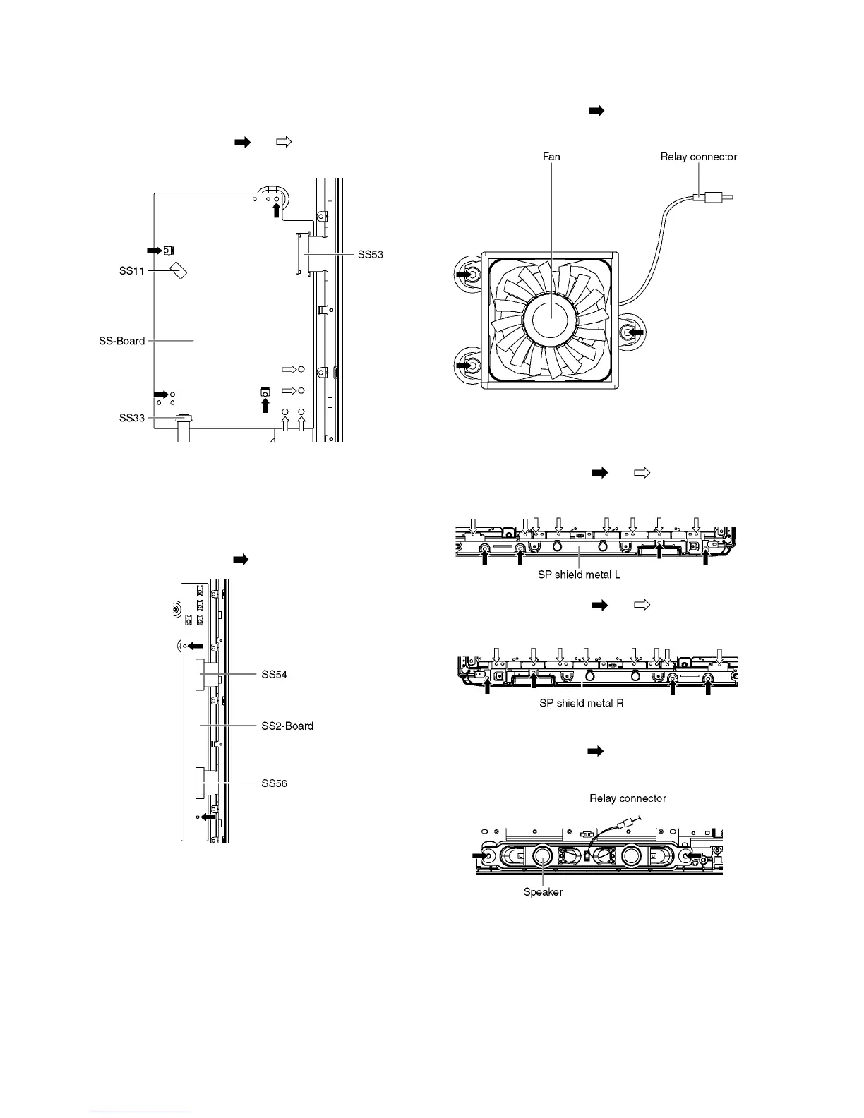 4. Remove the screws (×4 , ×4 ) and remove the SS-