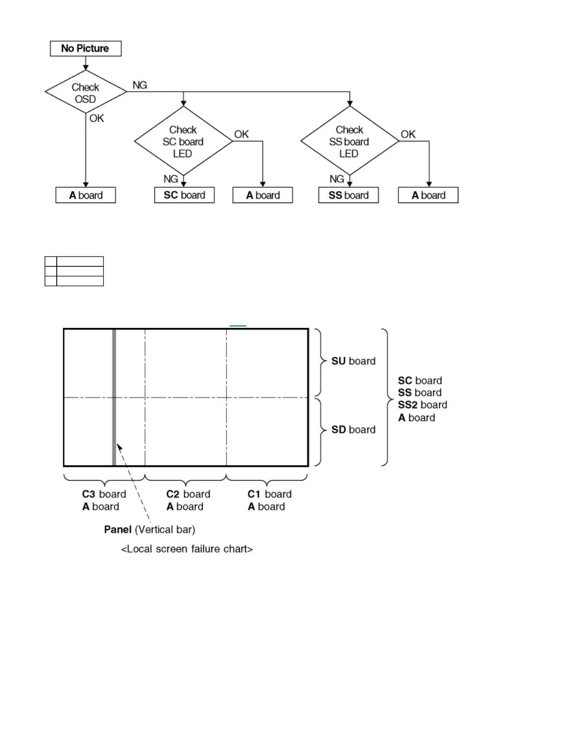 Plasma display may have local area failure on the screen. Fig-1 is the possible defect P.C.B. for each local area.
