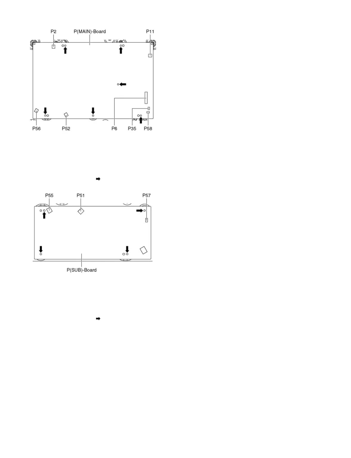 3. Remove the screws (×4 ) and remove the P(SUB)-Board.