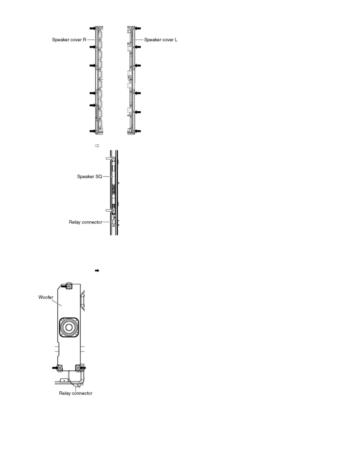 4. Remove the screws (×2 each) and remove the Speaker SQs (L, R).