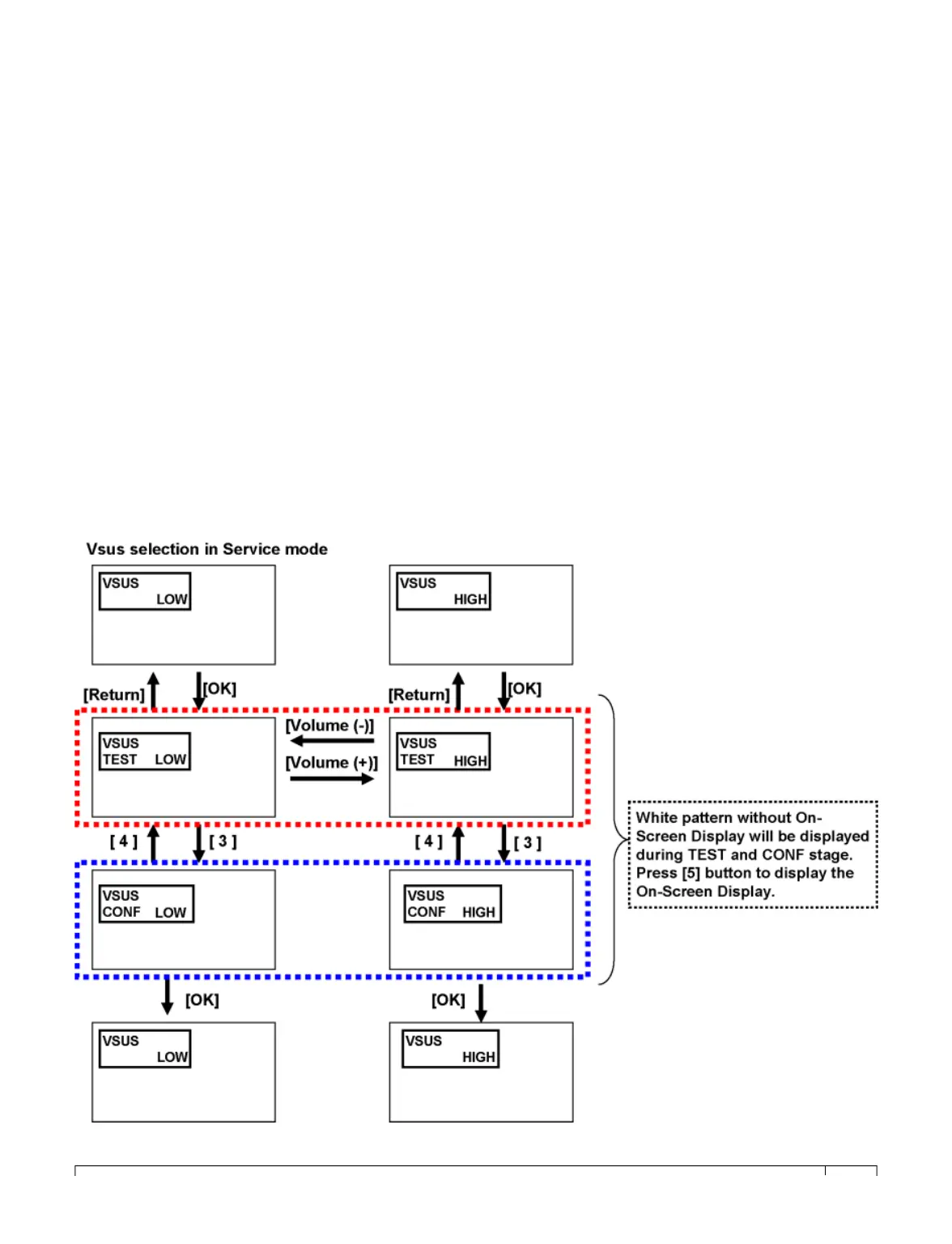 1. Go into main item [VSUS] in Service Mode. LOW or HIGH will be displayed.