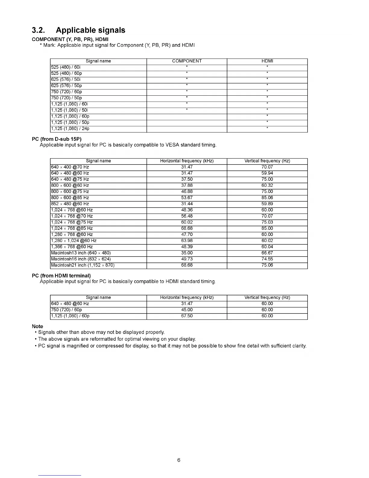 • Signals other than above may not be displayed properly.