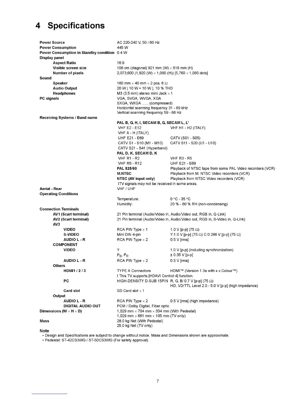 Pedestal: ST-42CS3WG / ST-50CS3WG (For safety approval)