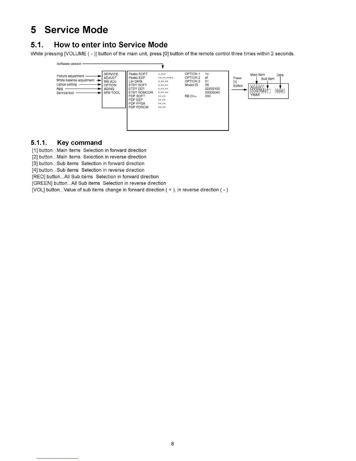 [VOL] button...Value of sub items change in forward direction ( + in reverse direction ( - )