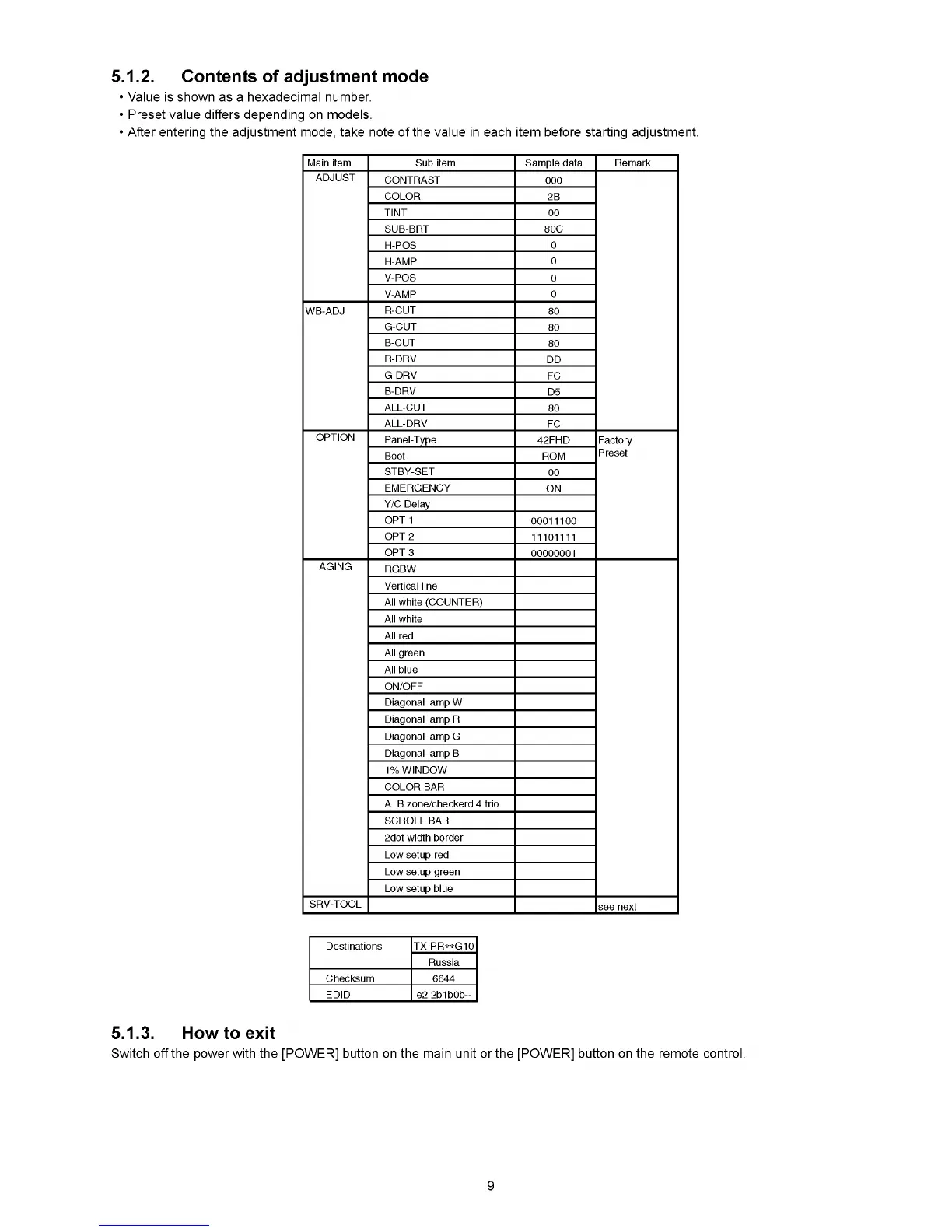 5.1.2. Contents of adjustment mode