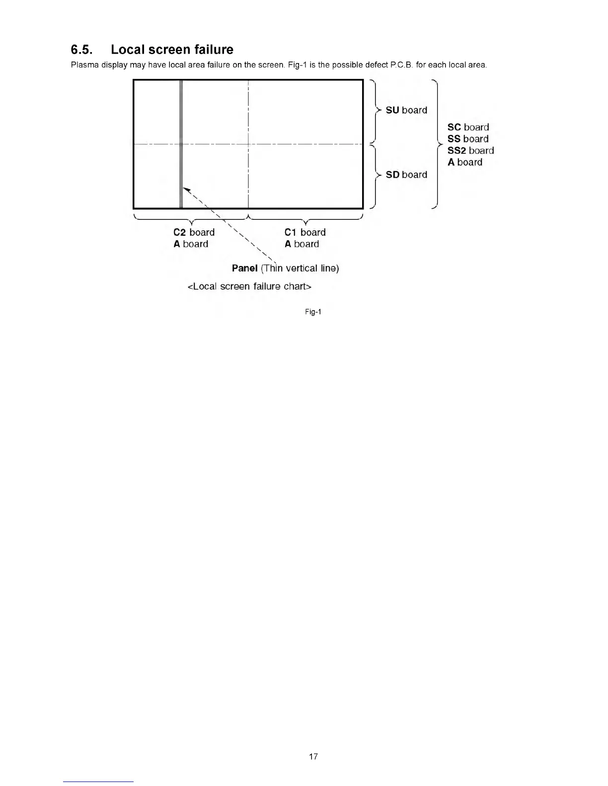 Plasma display may have local area failure on the screen. Fig-1 is the possible defect P.C.B. for each local area.