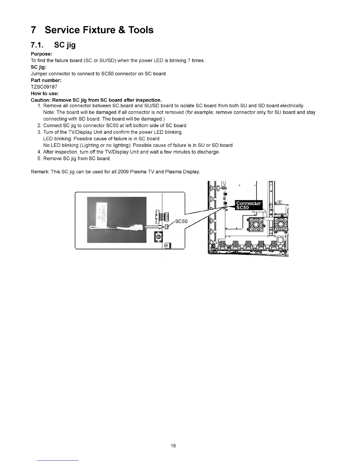 Remark: This SC jig can be used for all 2009 Plasma TV and Plasma Display.