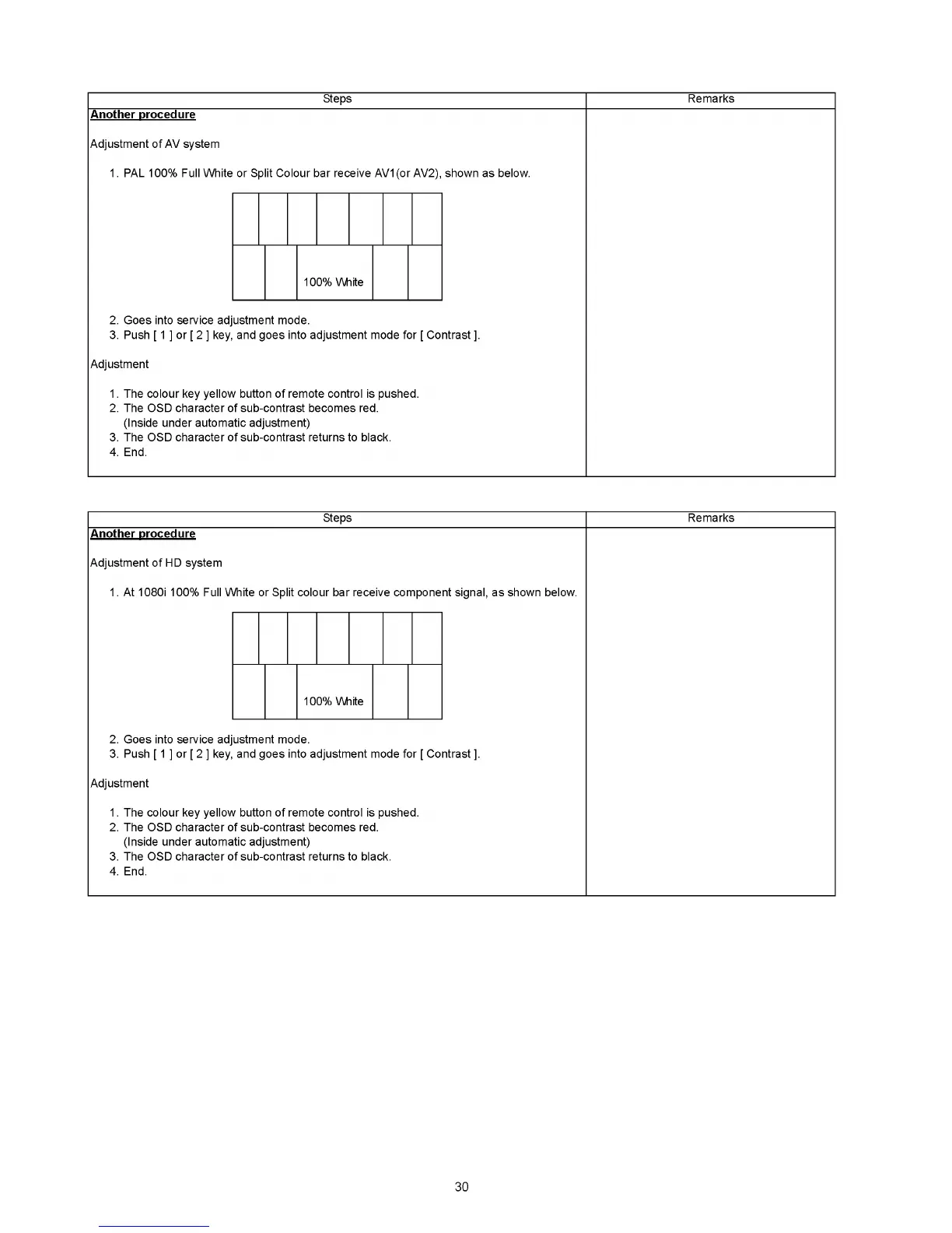 1. PAL 100% Full White or Split Colour bar receive AV1(or AV2), shown as below.