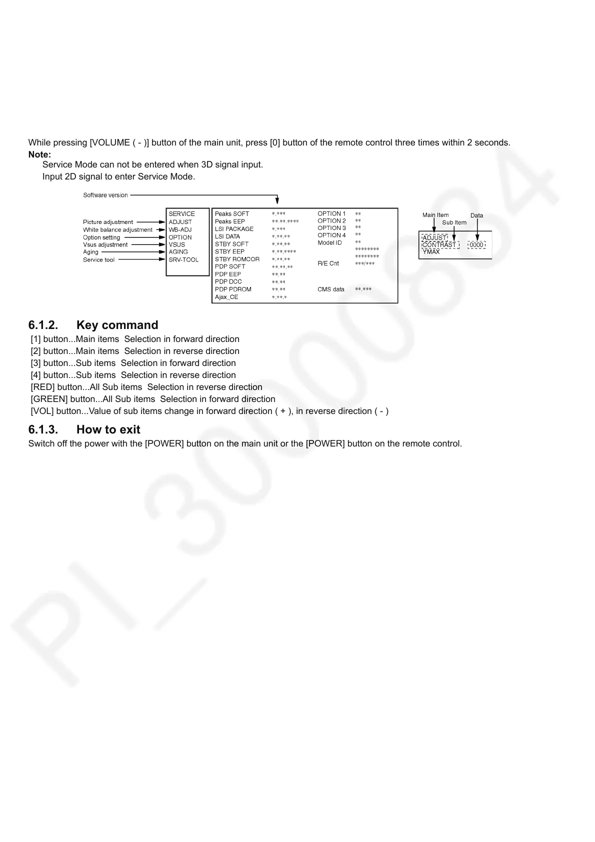 Input 2D signal to enter Service Mode.
