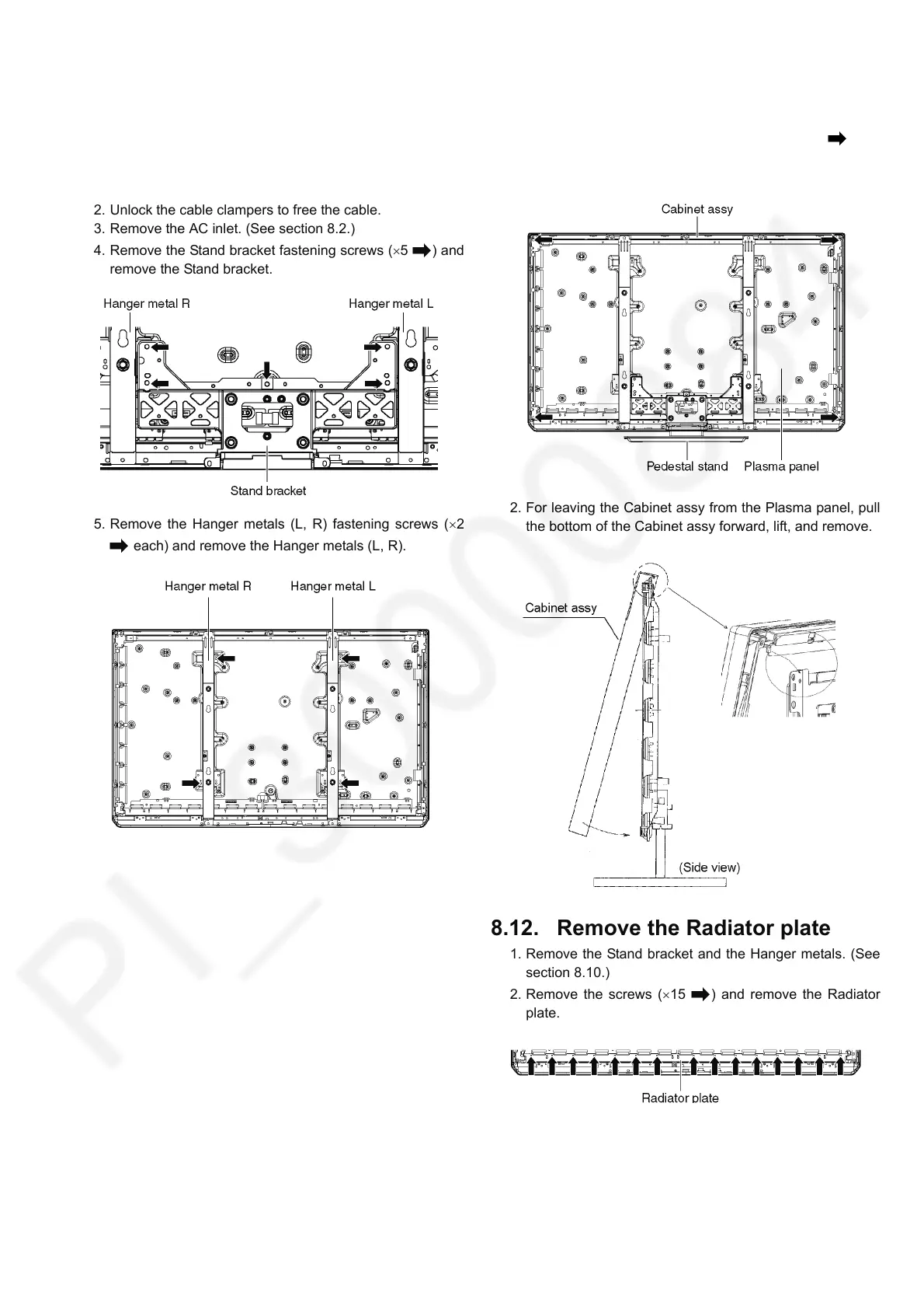 2. For leaving the Cabinet assy from the Plasma panel, pull