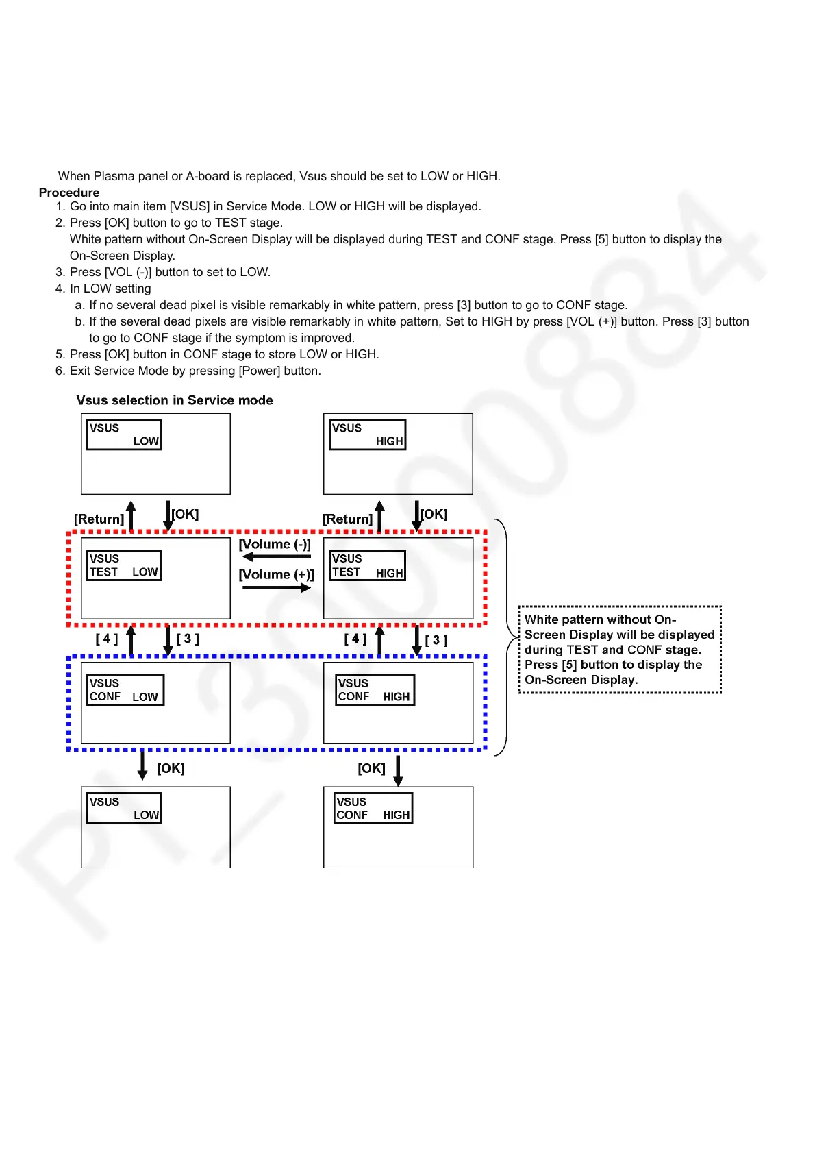 When Plasma panel or A-board is replaced, Vsus should be set to LOW or HIGH.