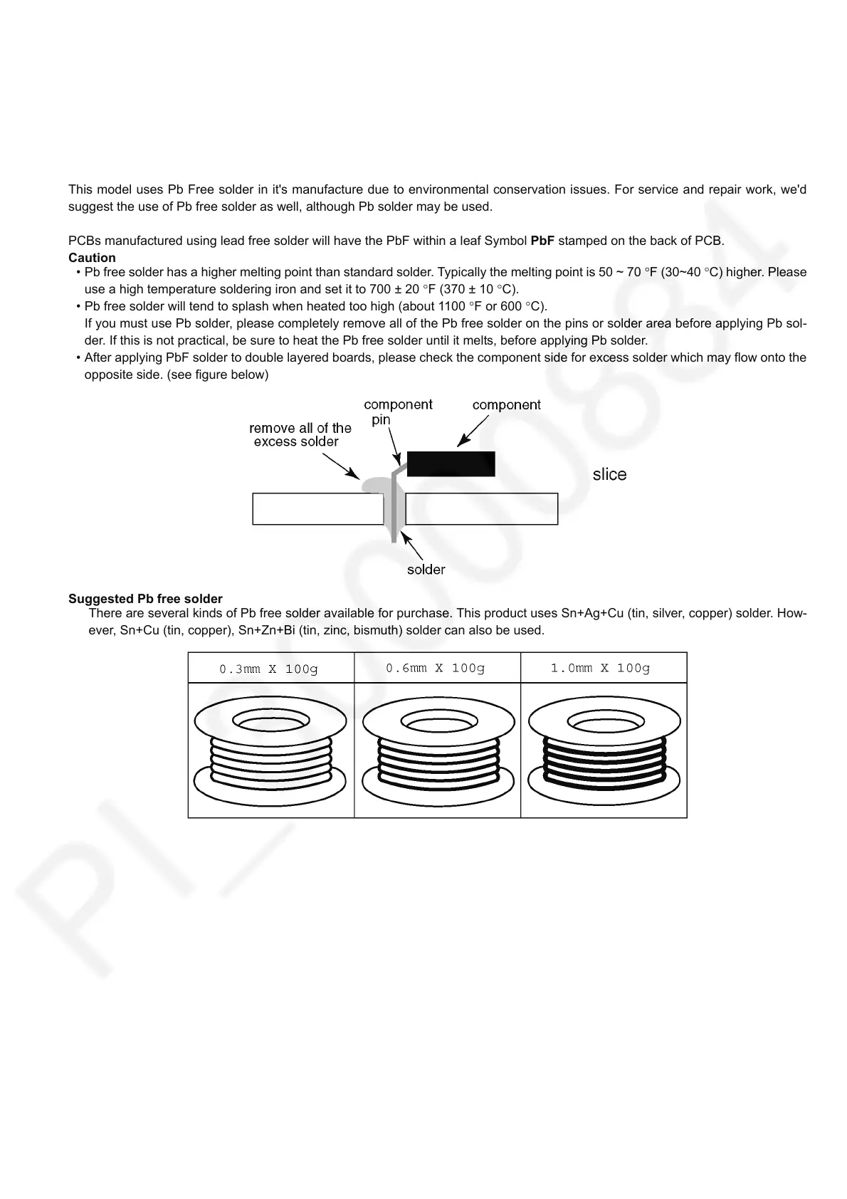 • After applying PbF solder to double layered boards, please check the component side for excess solder which may flow onto the