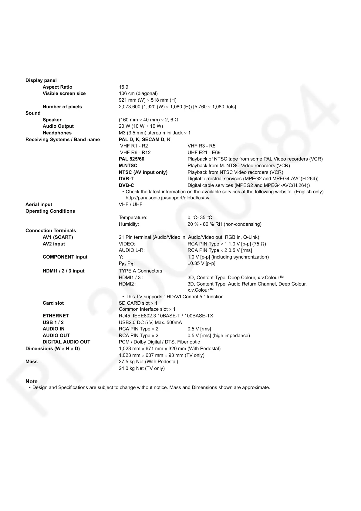 Visible screen size 106 cm (diagonal)