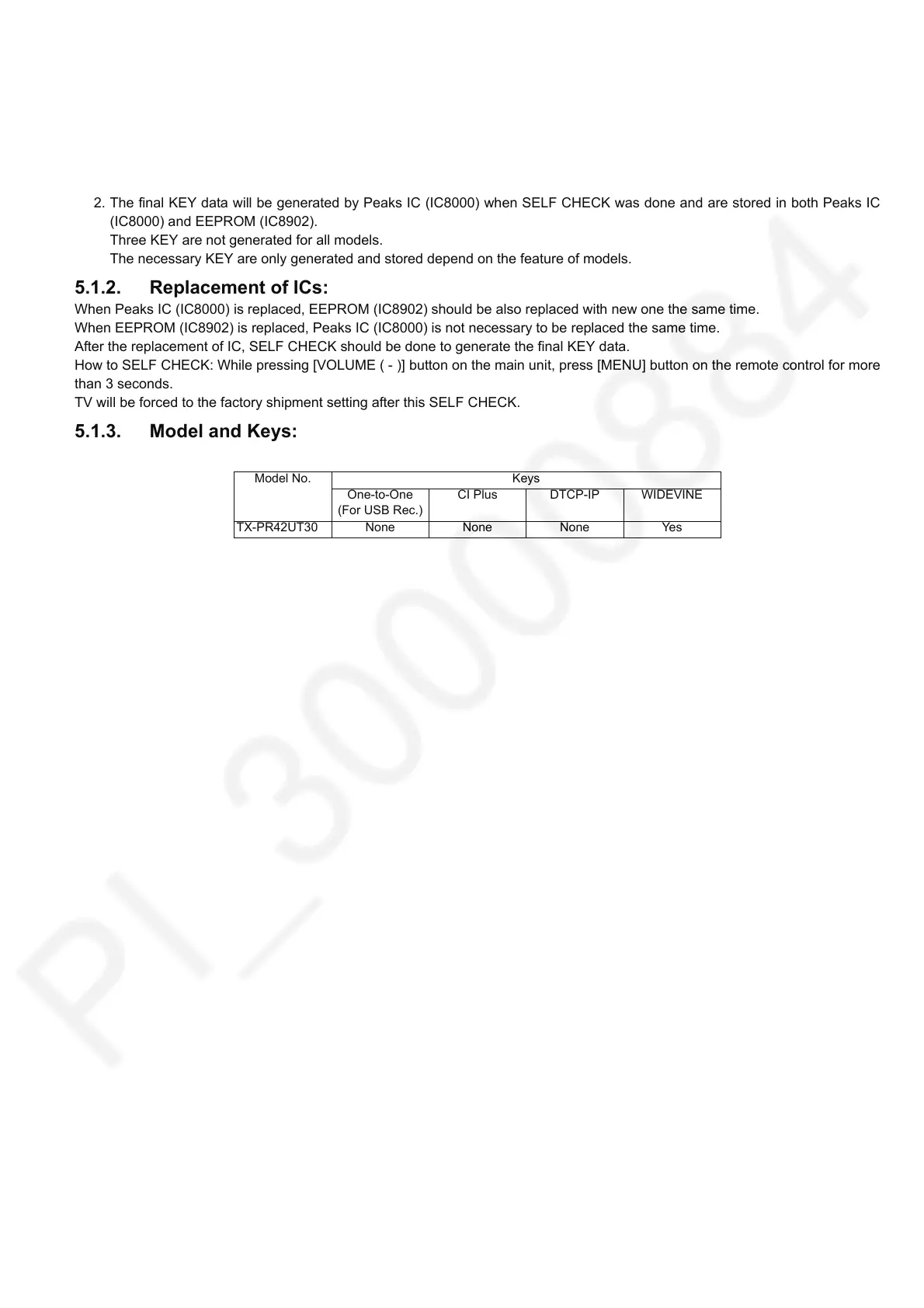 After the replacement of IC, SELF CHECK should be done to generate the final KEY data.
