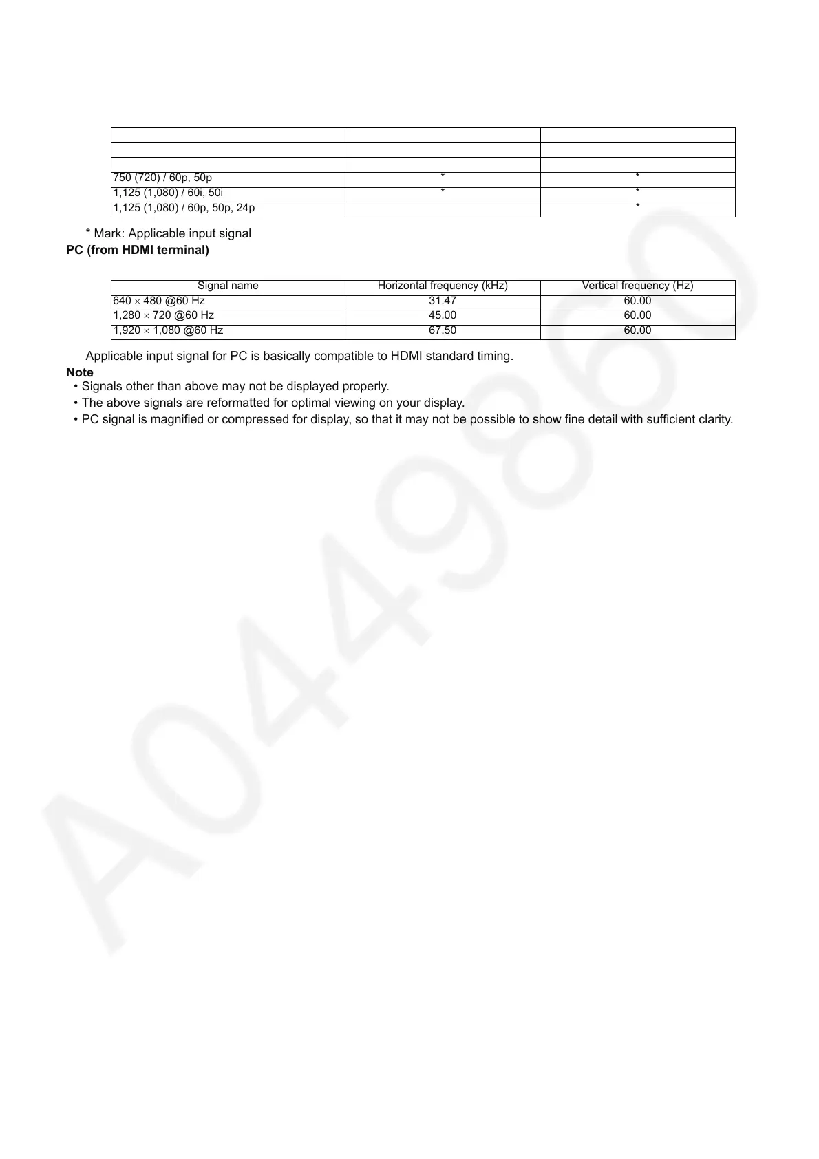 Applicable input signal for PC is basically compatible to HDMI standard timing.