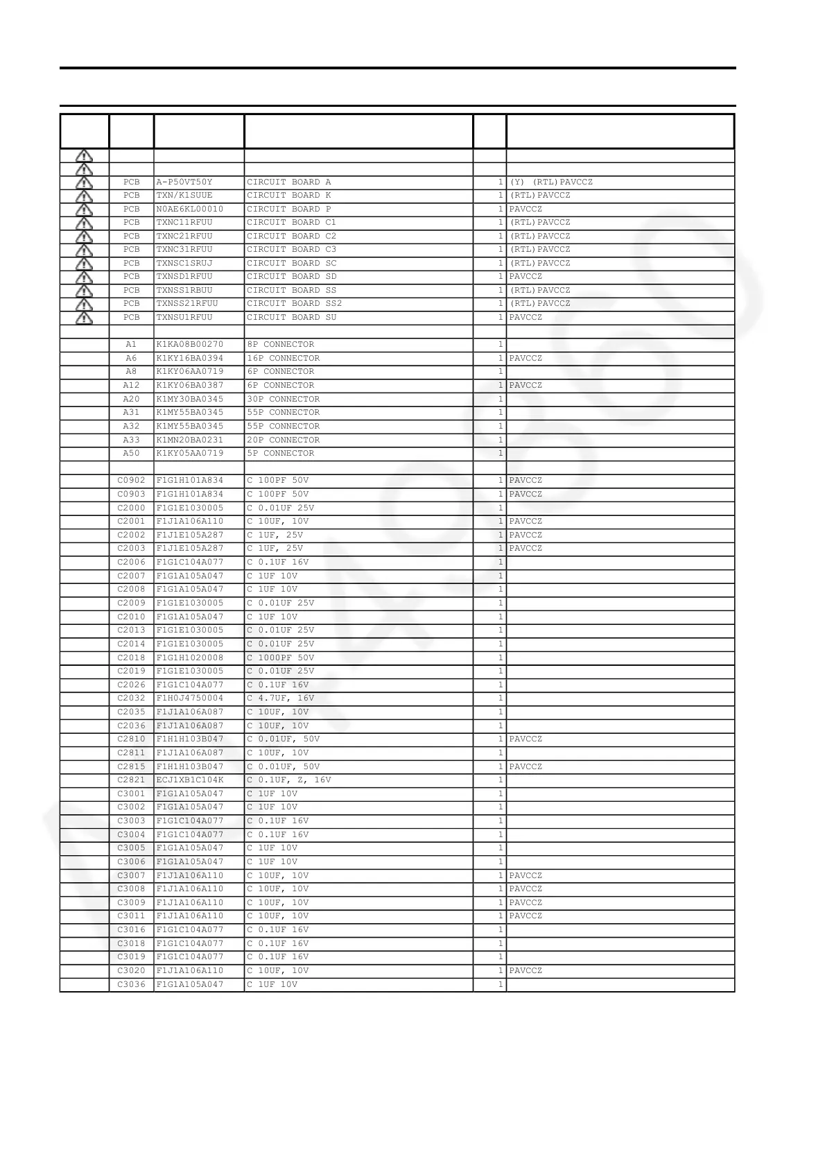 Model No. : TX-P50VT50B/Y,PR50VT50 Parts List