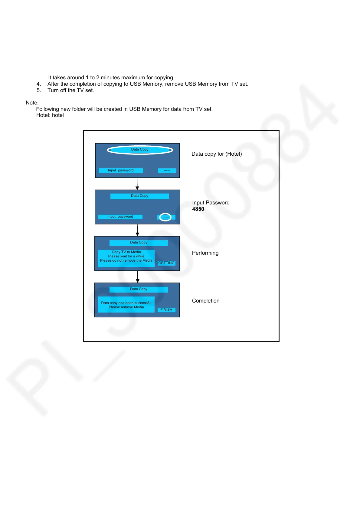 Data will be copied from TV set to USB Memory.