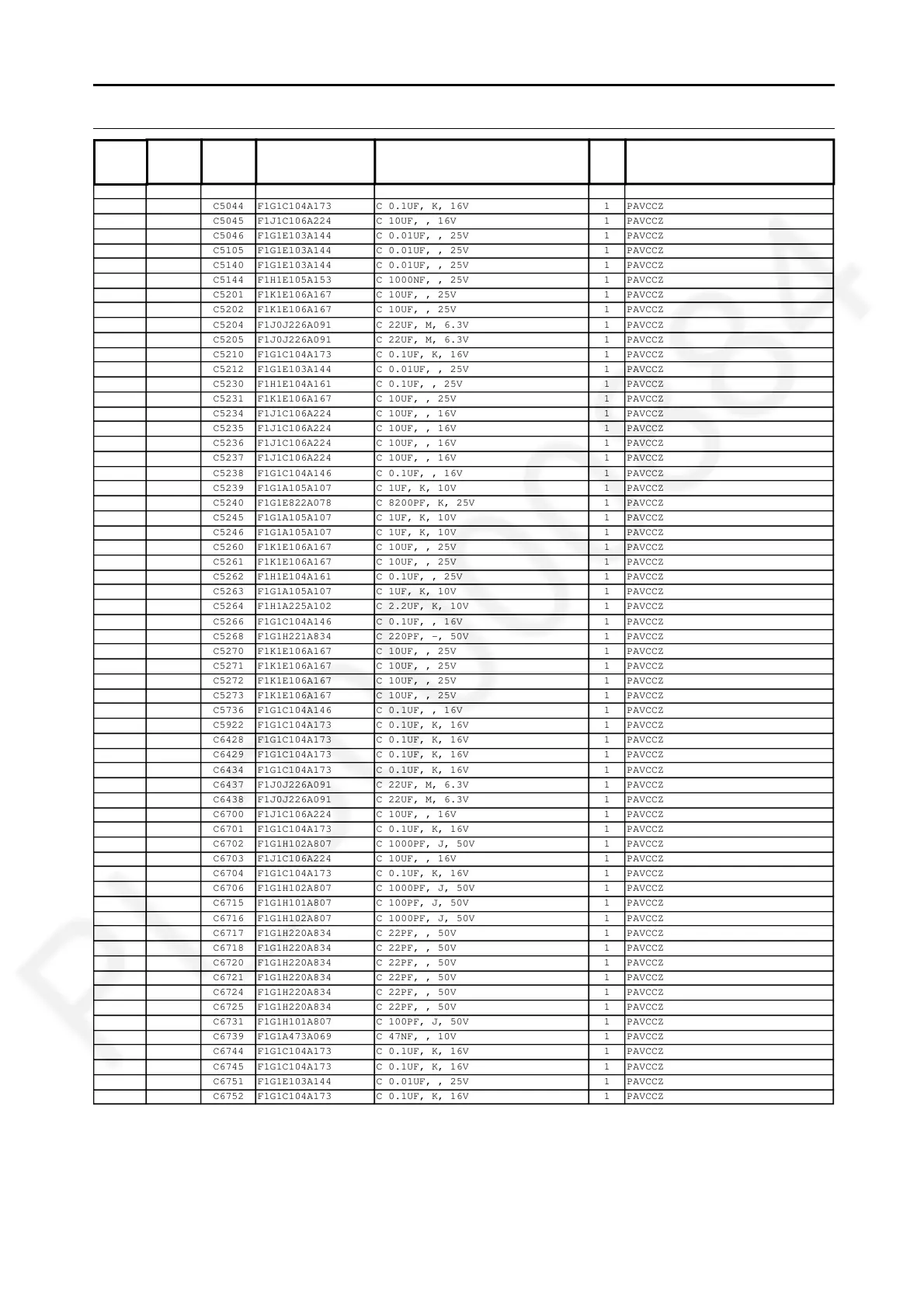 C6701 F1G1C104A173 C 0.1UF, K, 16V 1 PAVCCZ