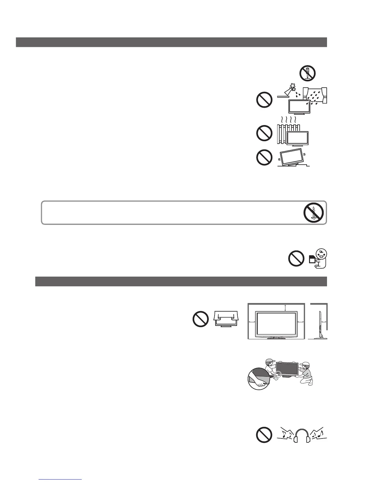 Do not expose the TV to direct sunlight and other sources of heat. To prevent fire ●