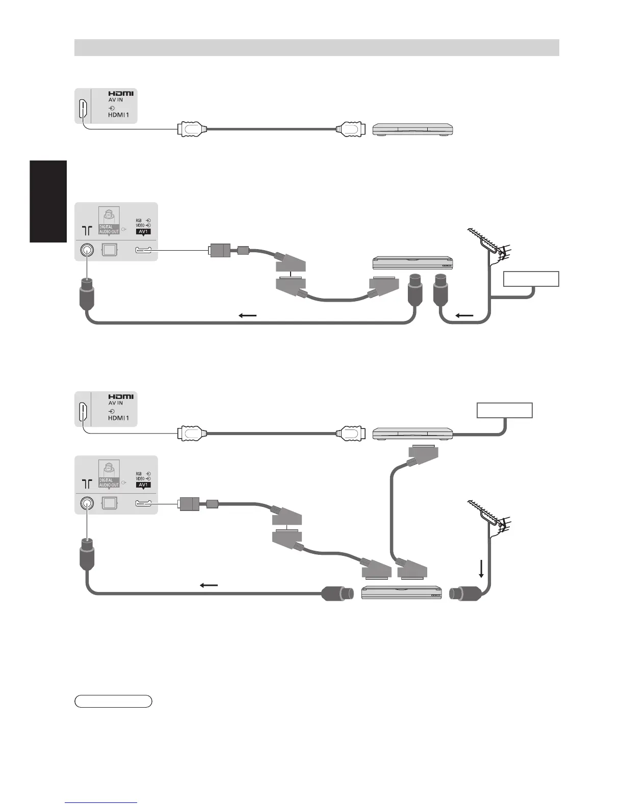 Gebruik een volledig bekabelde SCART- of HDMI-kabel.