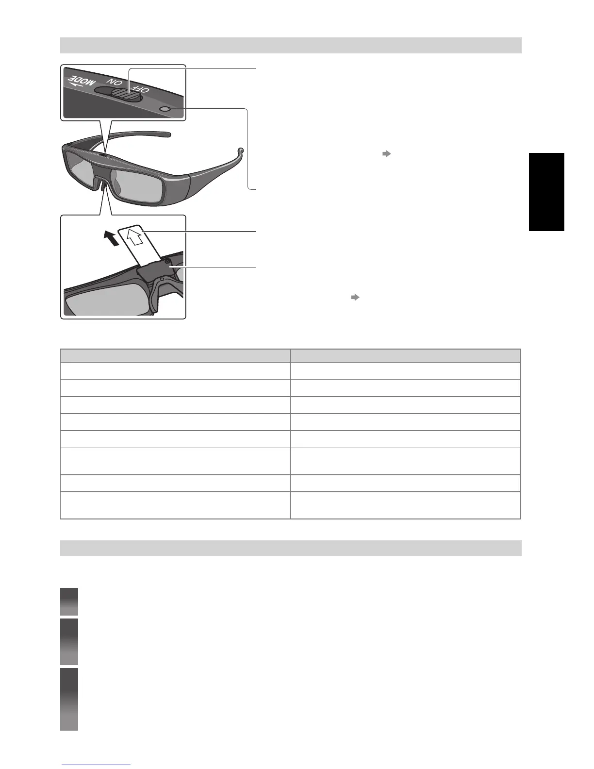 Schuif het knopje naar “ON” (aan) / “OFF” (uit) om de bril aan