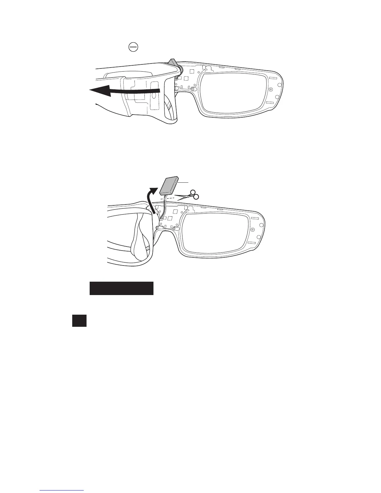 3. Remova a bateria e separe do óculos 3D cortando os os