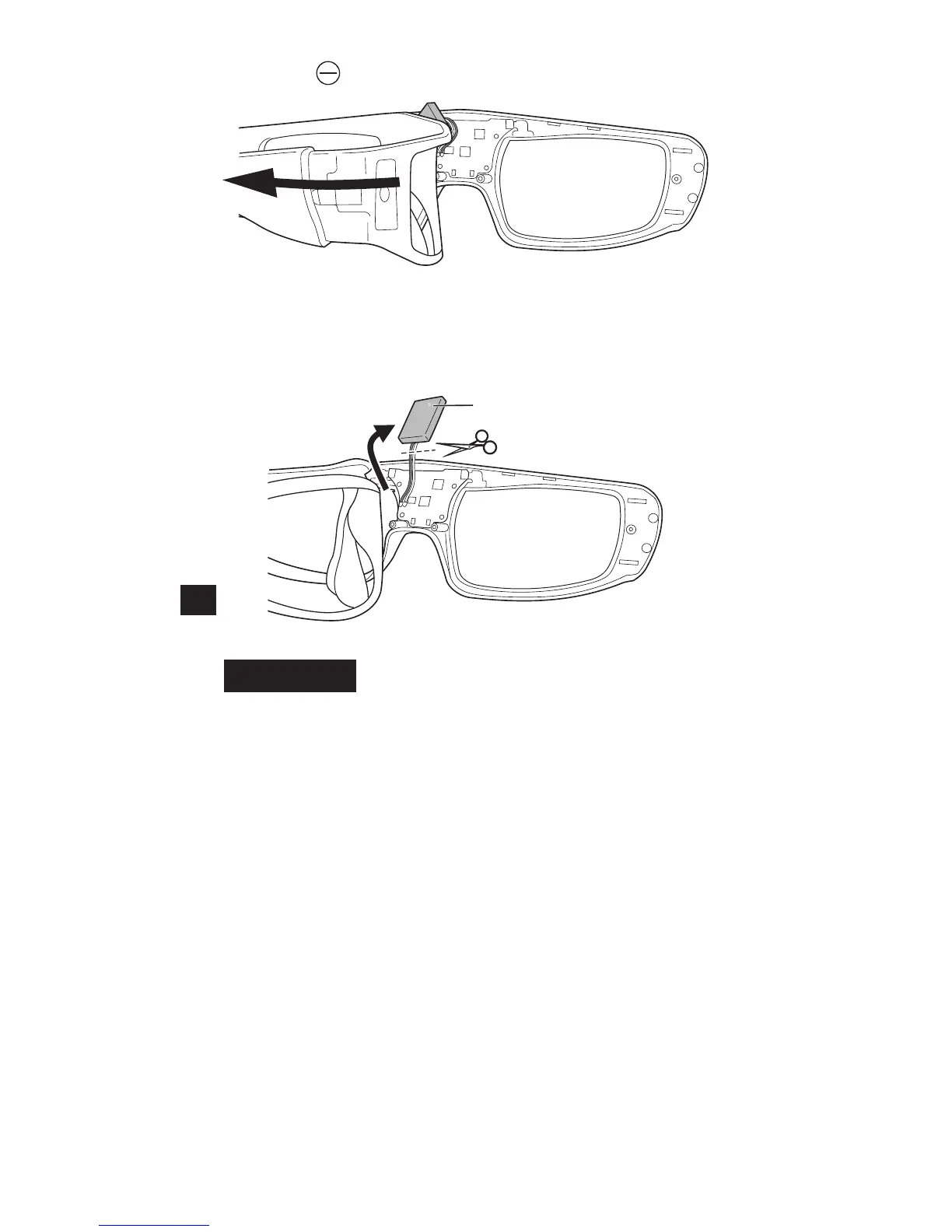 3. Retirez la pile et séparez-la des lunettes 3D en coupant