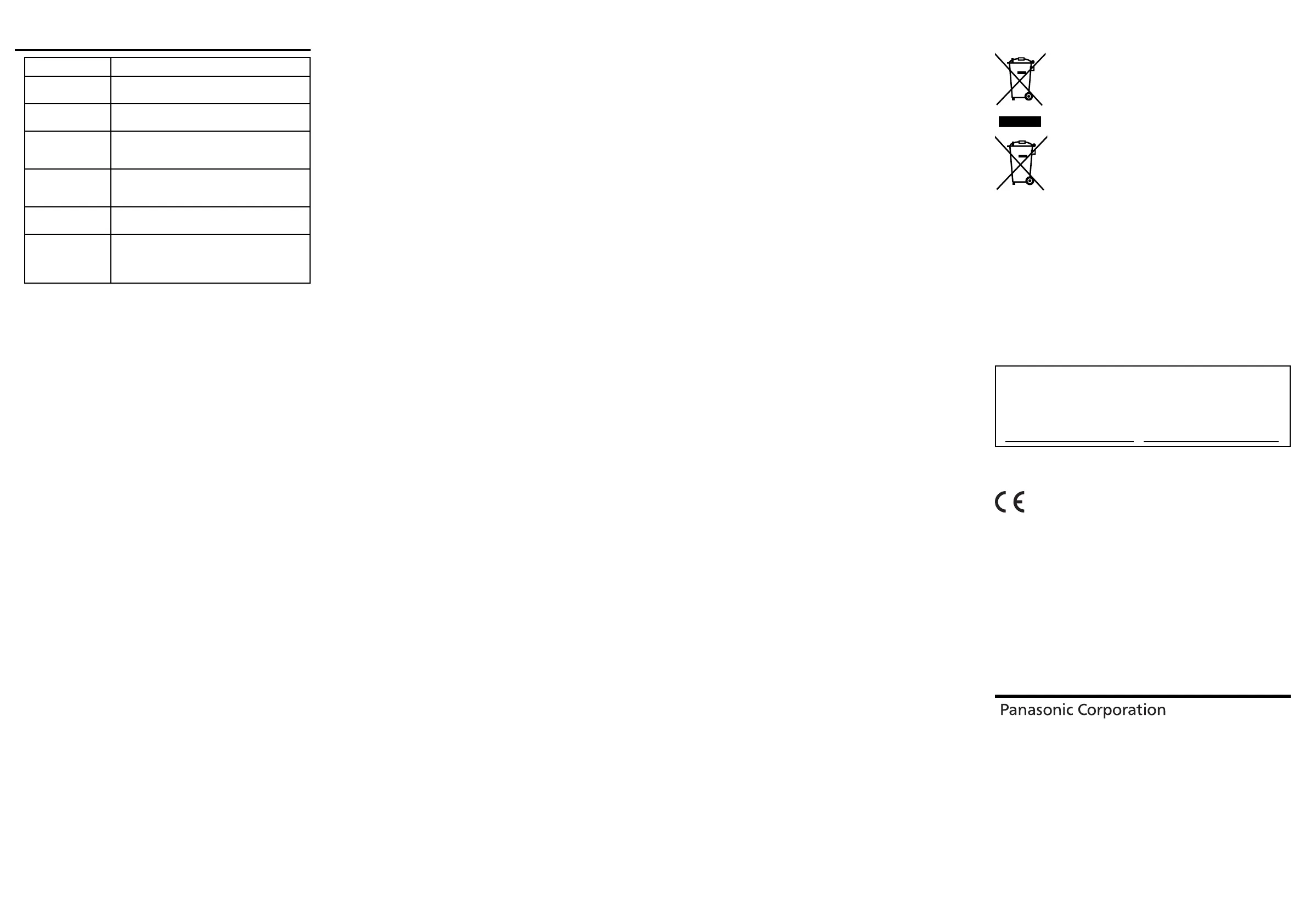For disposal or recycling information, please visit Panasonic website:
