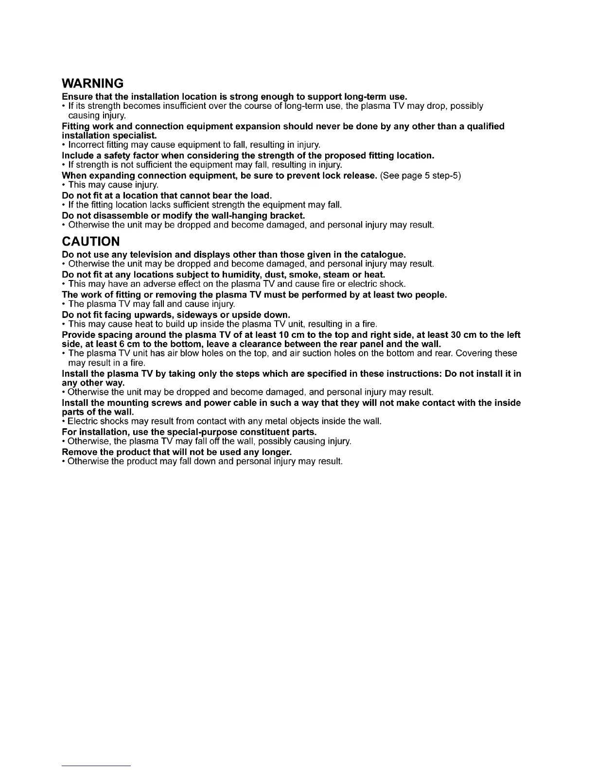 Panasonic TY-WK42PR4W - Safety Precautions; Installation and Usage Precautions