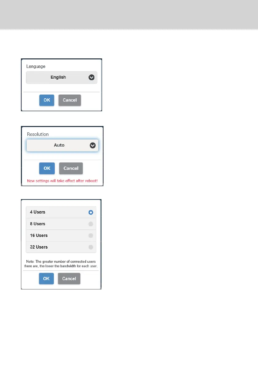 The Web setting screen has setting options such as Language, Resolution and Max Connection.