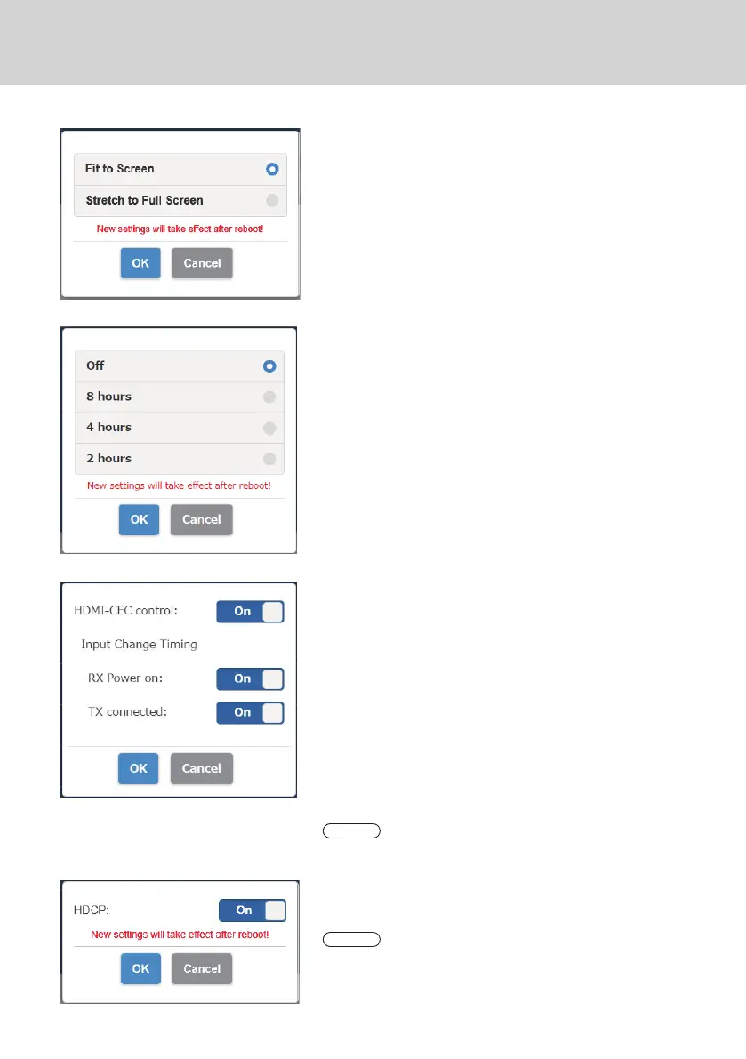 This switches the HDCP setting On or Off.