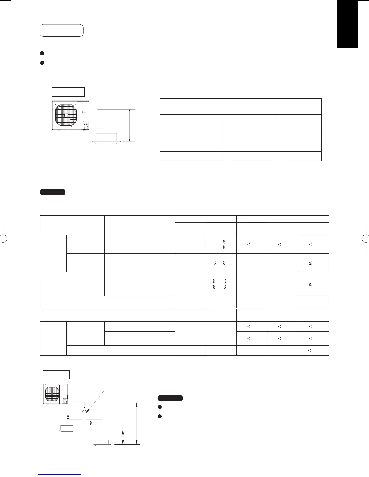The lengths of the refrigerant tubes between the indoor and outdoor units are limited by the elevation difference