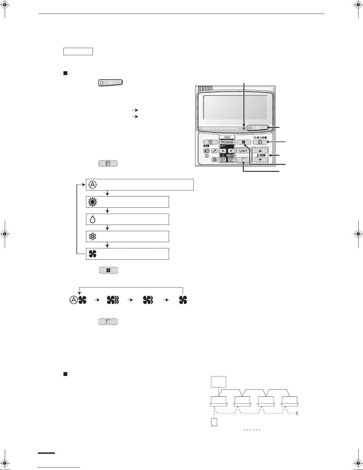 Натискайте кнопку коливання/напрямку потоку повітря для встановлення режиму