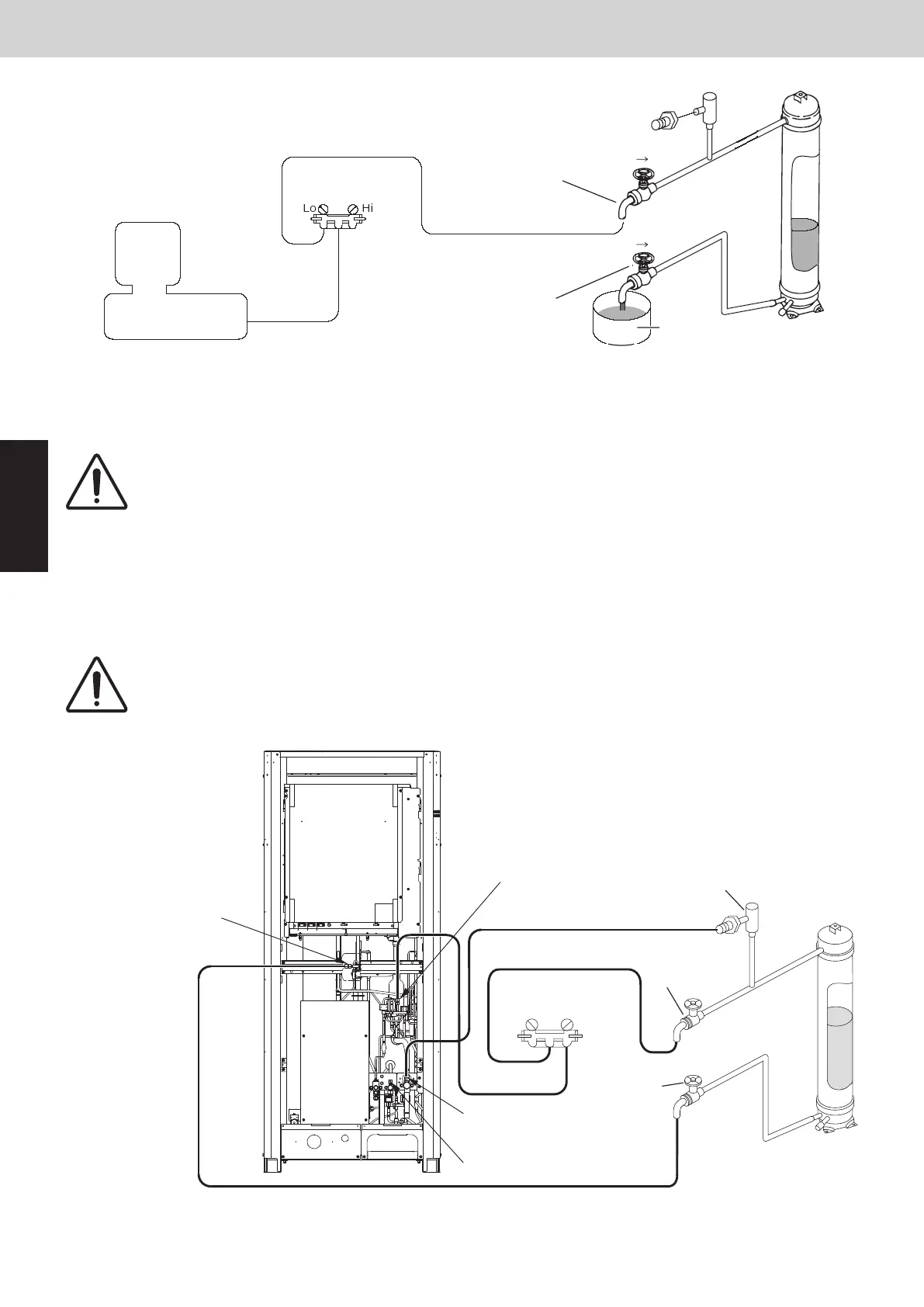 valve. Next, run the vacuum pump until the system pressure reaches lower than -101kPa {-755mmHg, 5 Torr}.