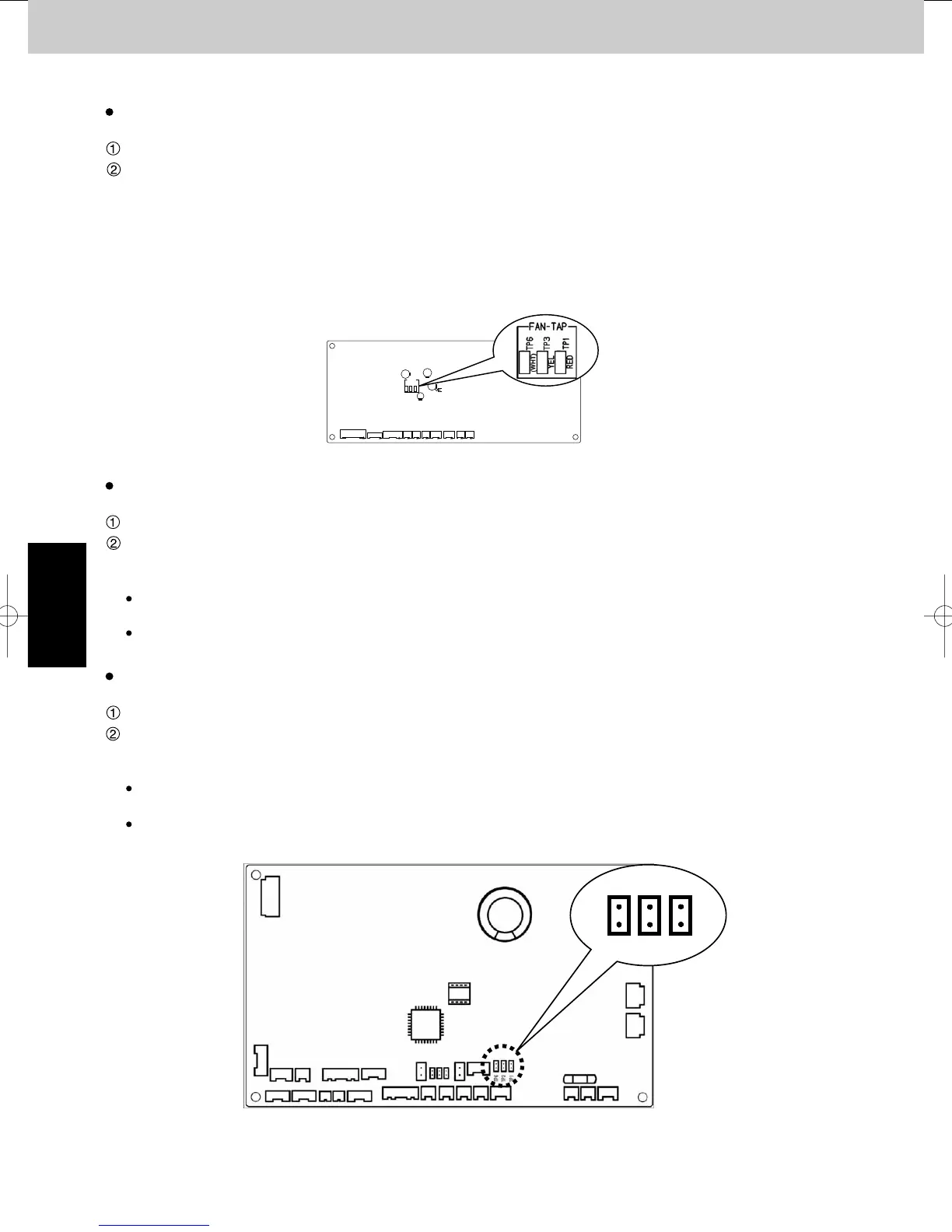 Selecting the DC fan motor tap (when setting from the PCB)