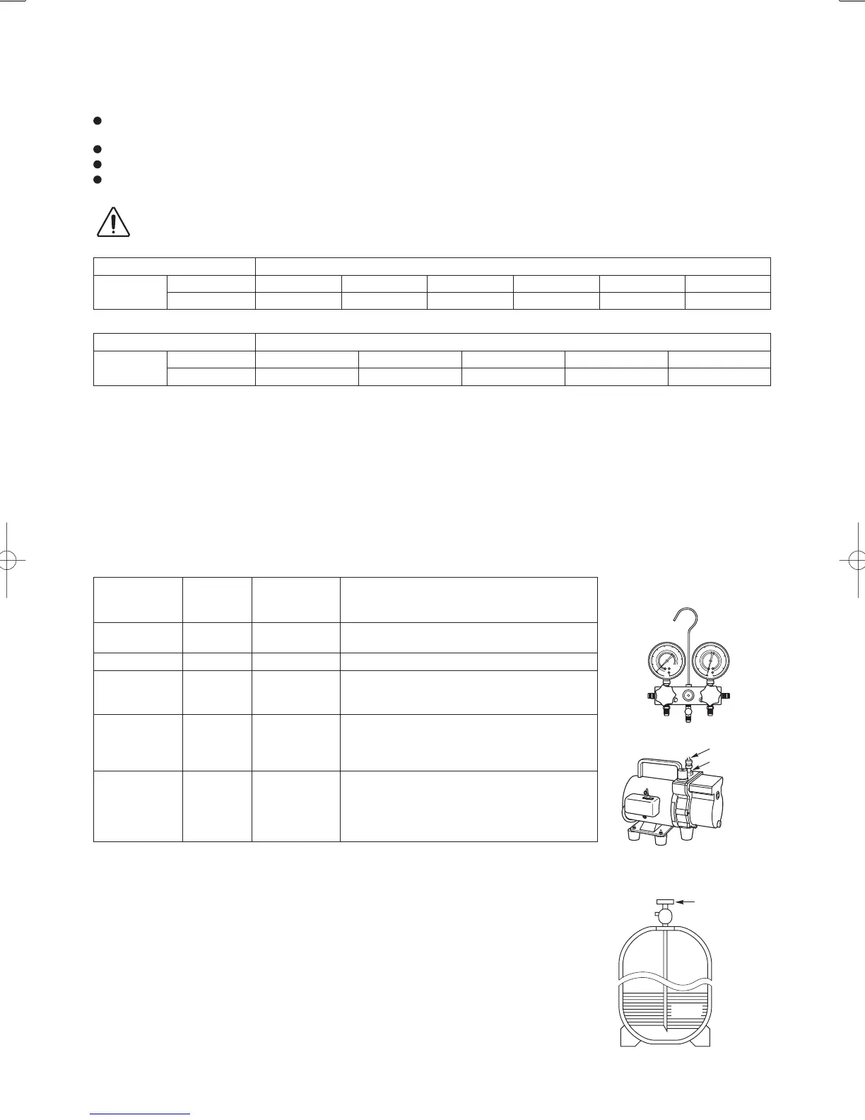 Manifold gauge Yes No Types of refrigerant, refrigerating machine oil,