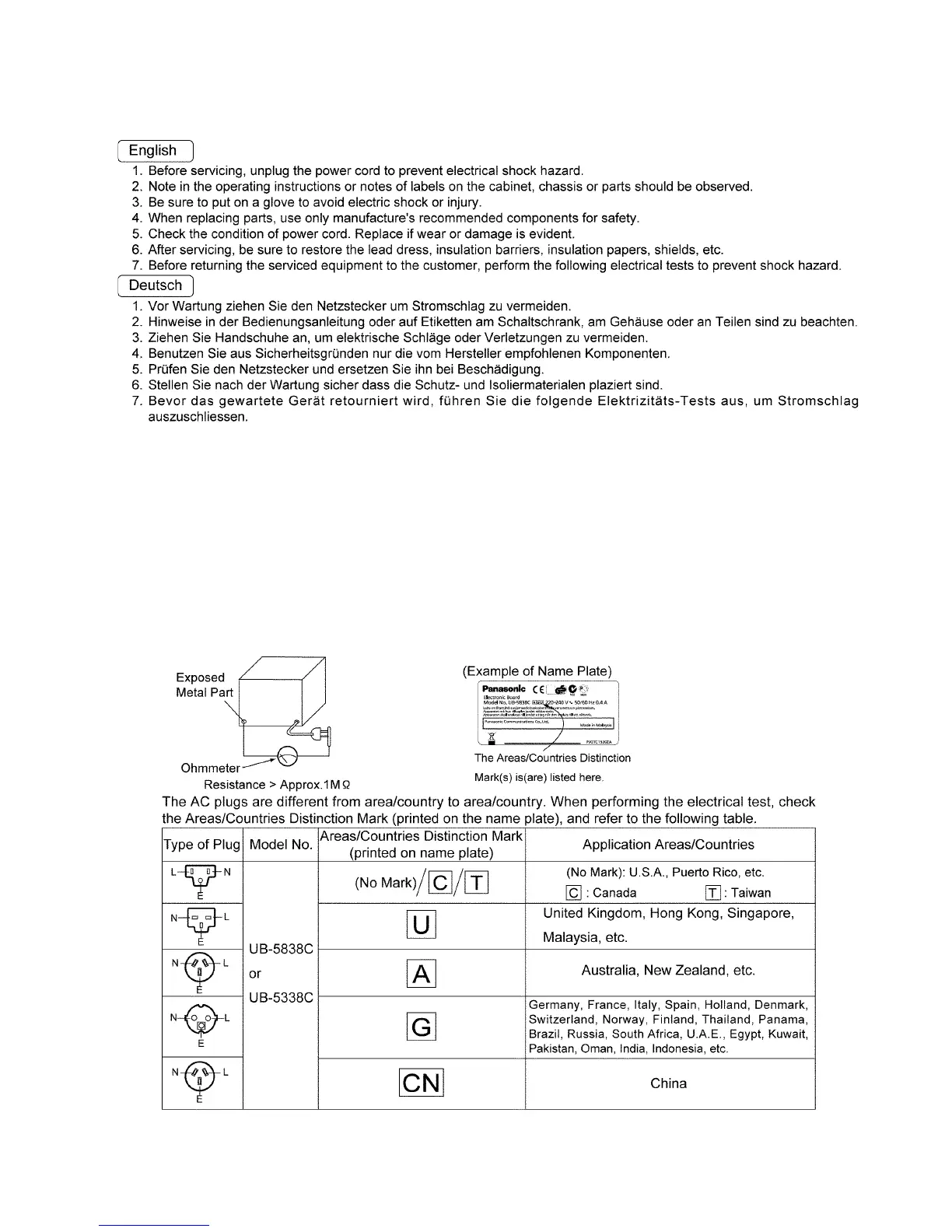 4. Measure the resistance value with an ohmmeter between the jumpered AC plug and each exposed metal cabinet part, such