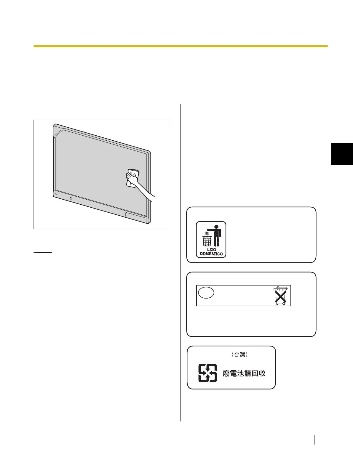 When cleaning the elite Panaboard or inside the elite Panaboard, make sure to switch off the power and unplug